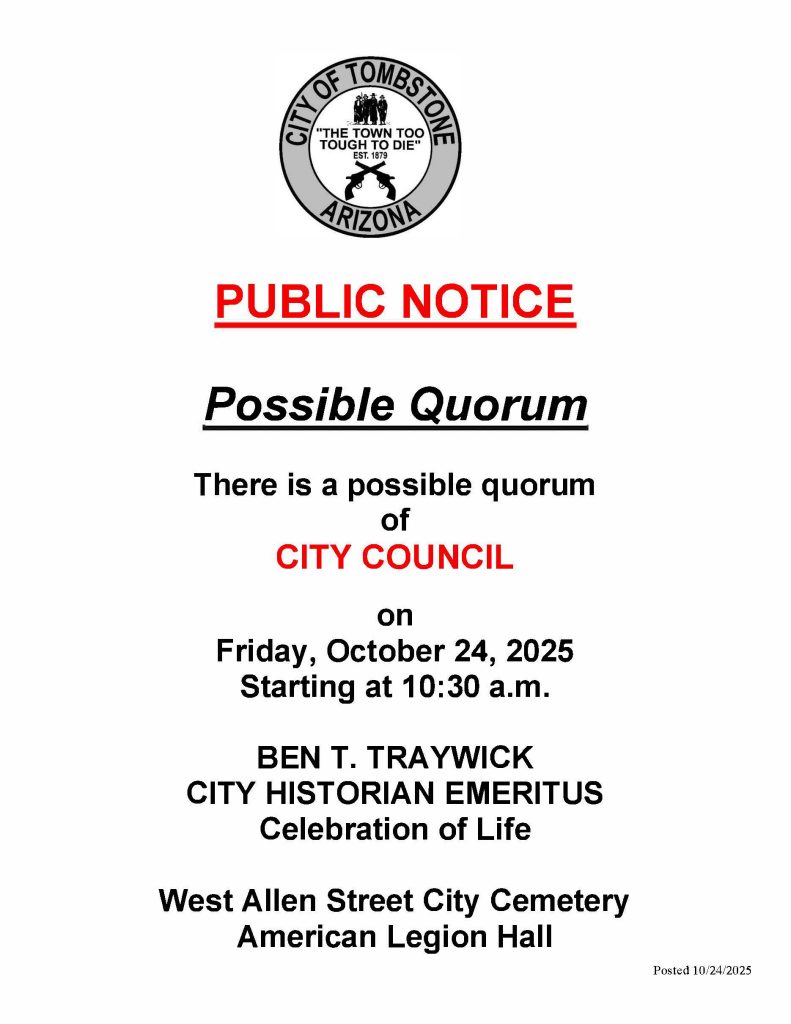 There is a possible Quorum of City Council at the West Allen Street City Cemetery and American Legion Hall, Friday, October 24, 2025 starting at 10:30 AM.