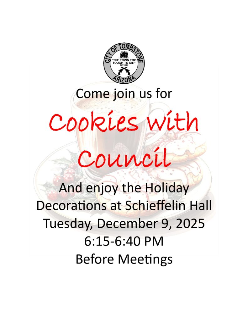 Come join us for Cookies with Council before the Board of Police Commissioners meeting, Tuesday, December 9, 2025 at 6:15 PM.