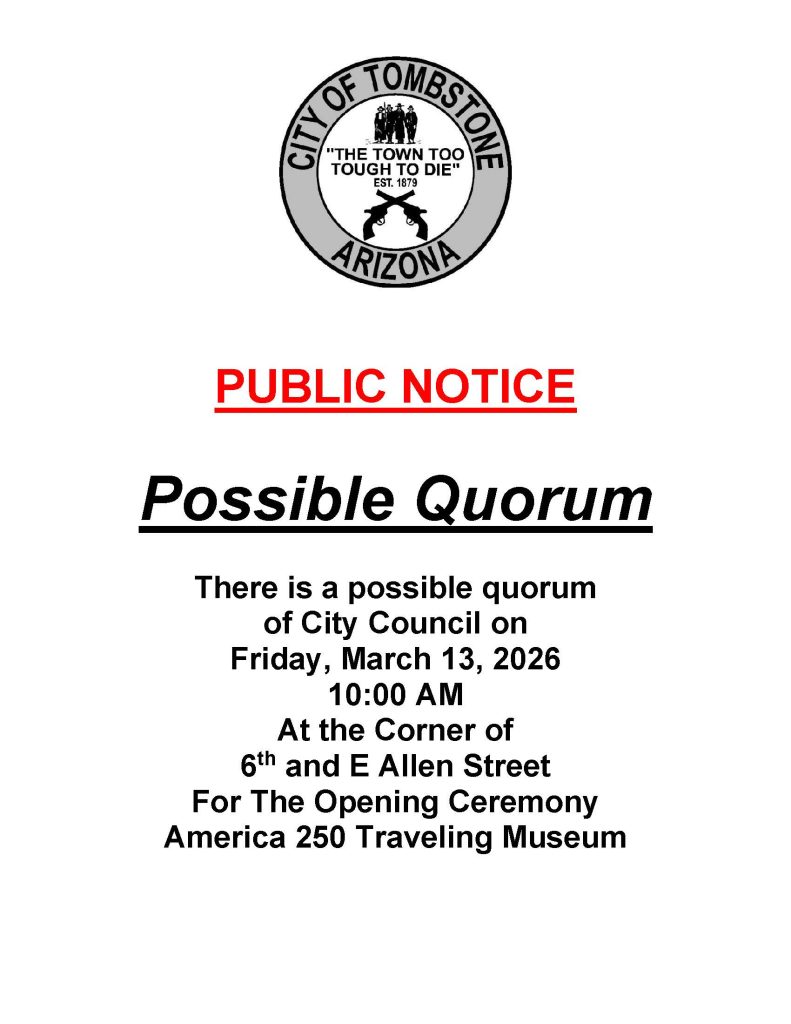 Possible Quorum of Common Council at the opening ceremonies for the America 250 Traveling Museum on Friday 3/13/2026 at 10 AM.