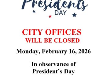 City offices including City Hall, Public Works, Senior Center, and Library will be closed Monday…