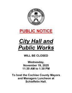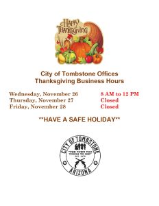 City of Tombstone offices will be closing Wednesday, November 25,…